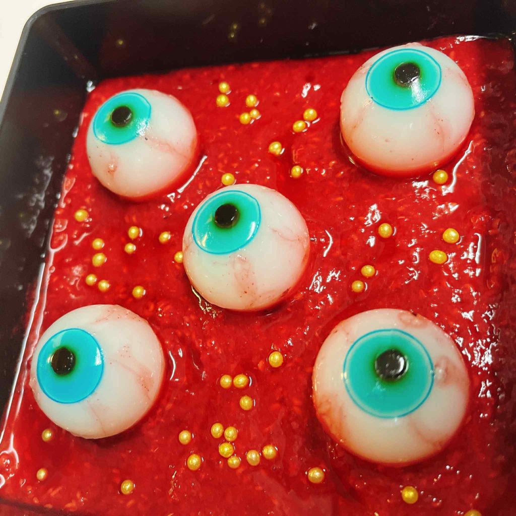 赤いベリーソースの海にぷるぷる浮かぶ目玉たち。